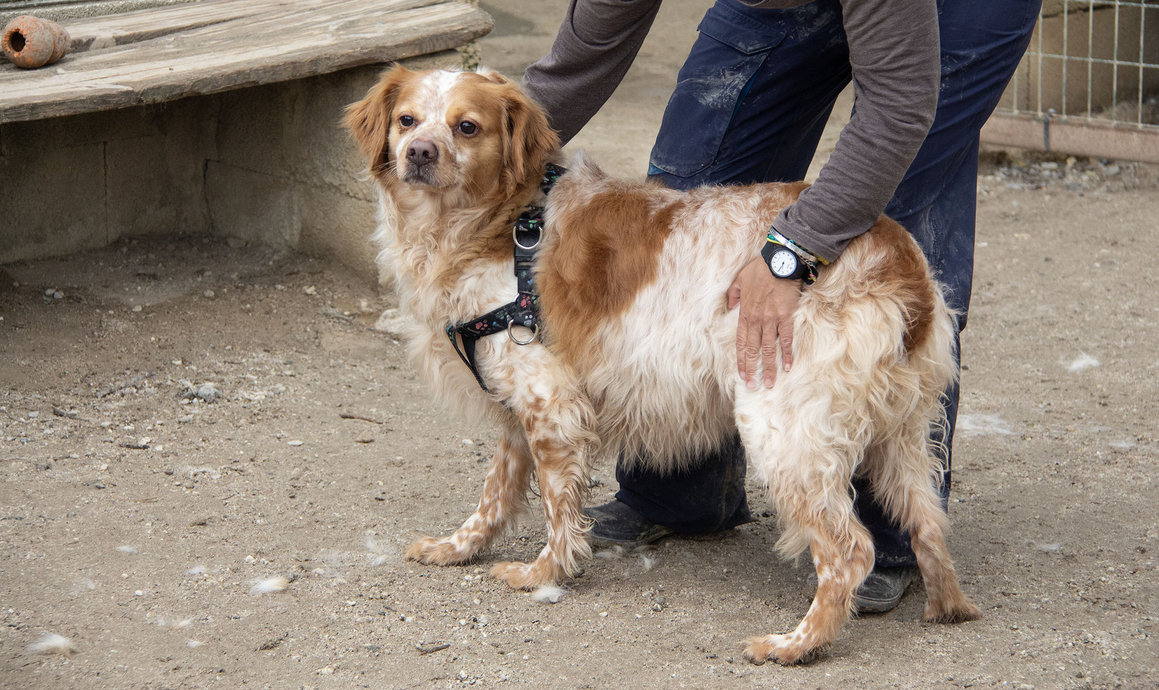 Broche fue adoptado de cachorro en Melampo y ha vivido en una casa junto con Noah y Paris. Actualmente han sido dejados en la protectora porque la pareja ha tenido un niño, y ya no hay tiempo para los tres dulces tesoros. Al llegar a la protectora no entendian por que estaban alli y lo han pasado mal, igual que todos los perros que llegan desde una casa. De caracter son muy buenos, muy cariñosos los tres con las personas, obedientes y buscan la cercania y los abrazos de los voluntarios. Son muy sociables y juguetones con los demás perros de la protectora. Salen en gran grupo con machos y hembras desde el primer dia.
