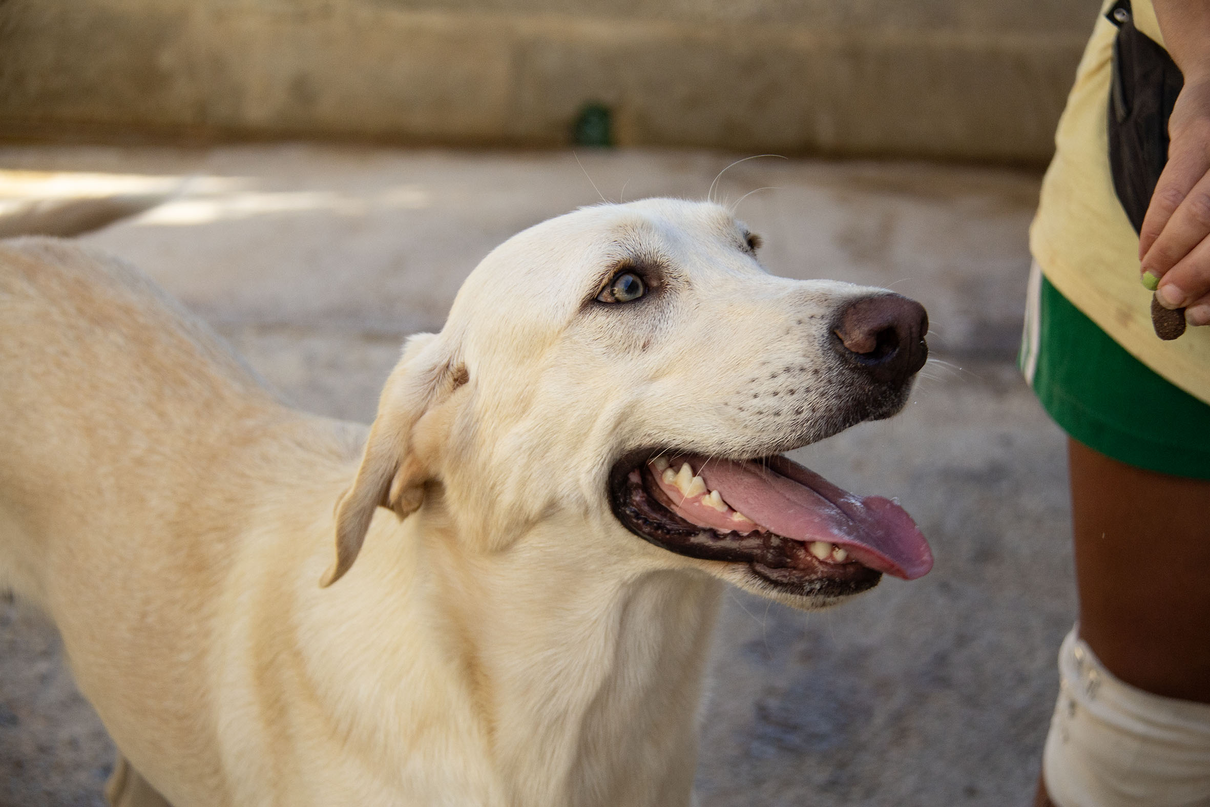 Muy buen perro, tiene un carácter que destaca por ser simpático, afectuoso y juguetón. Igual que Hydra, pero mas prudente y cuidadoso en su trato con las personas. Muy cariñoso y cercano y quiere caricias y juego. Nunca busca problemas y sumiso con los perros dominantes. Solo quiere correr y jugar con ellos. Convive con machos y hembras y sale en gran grupo.