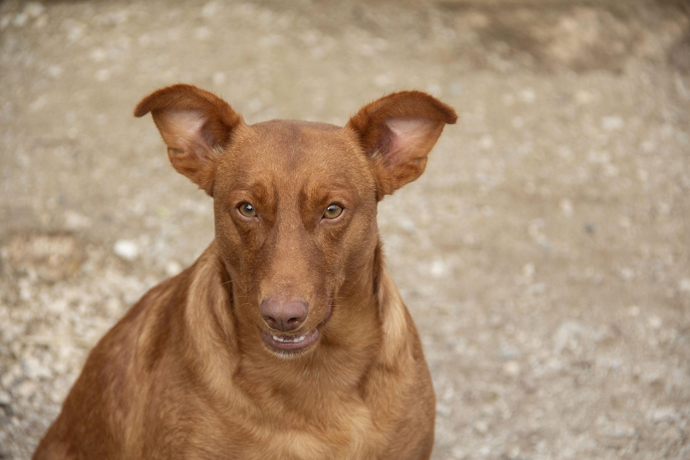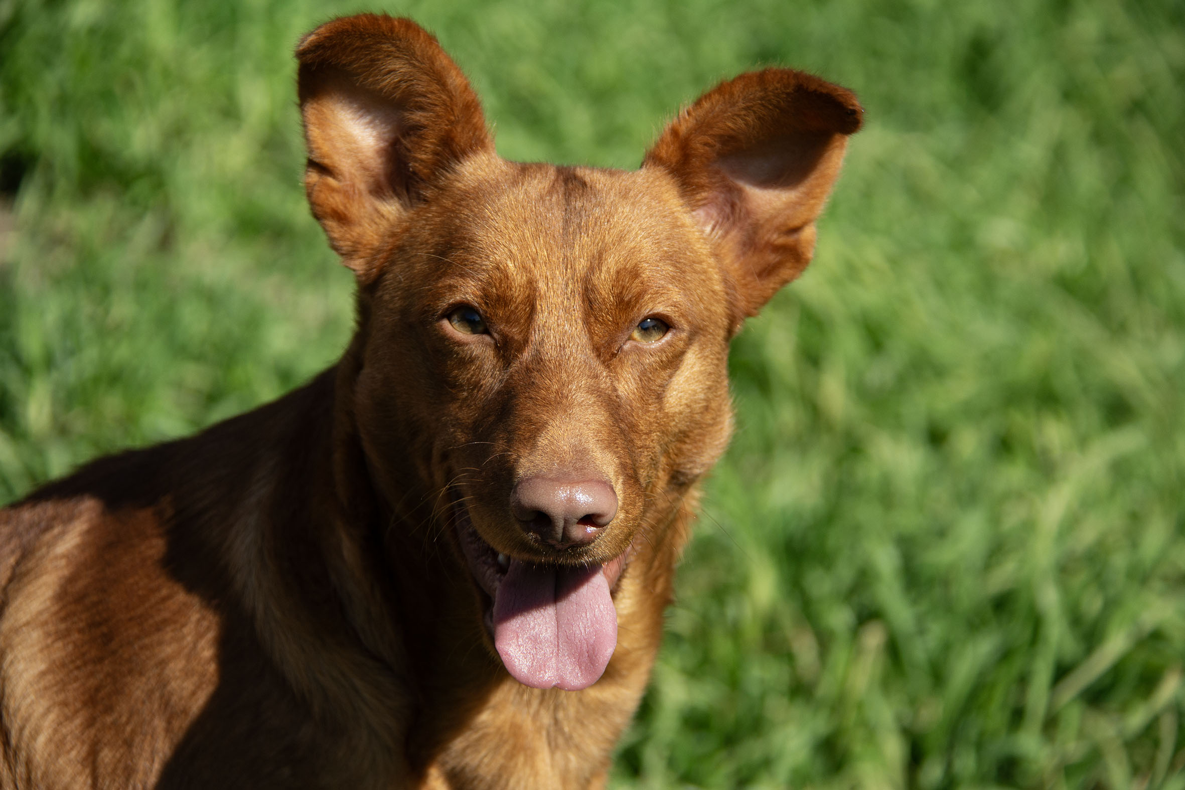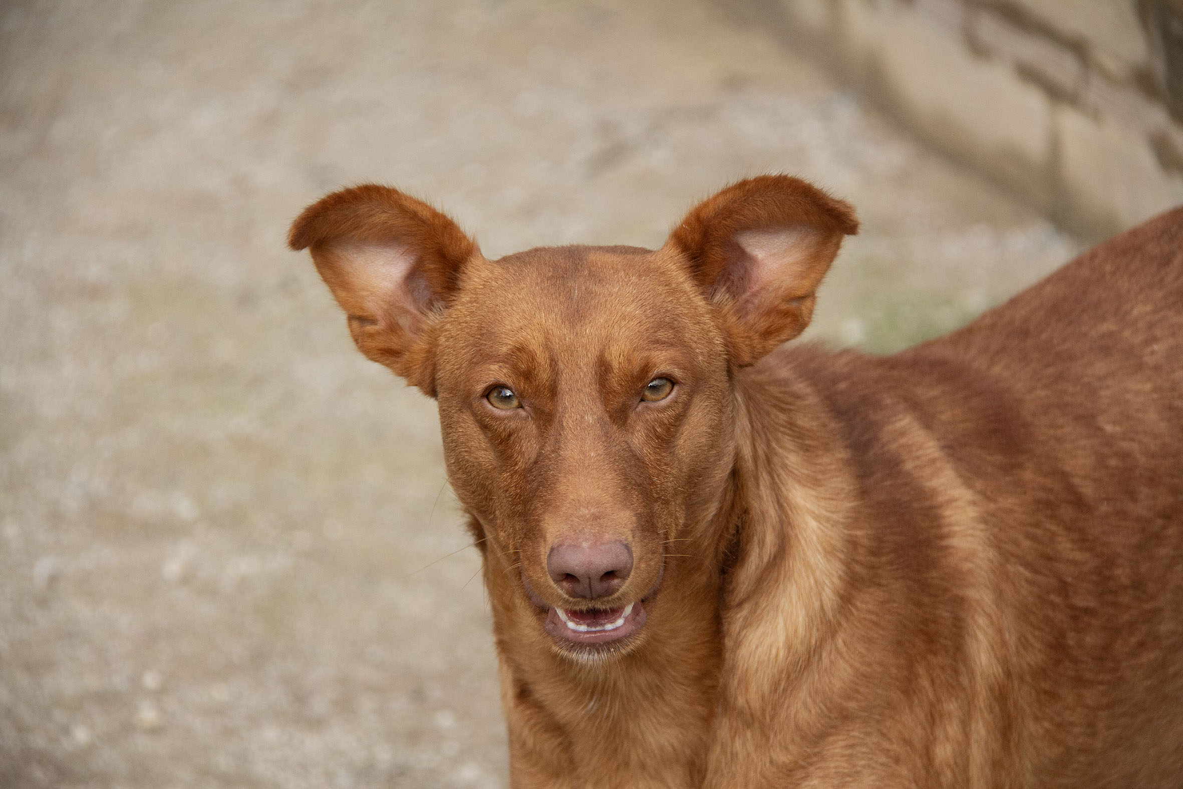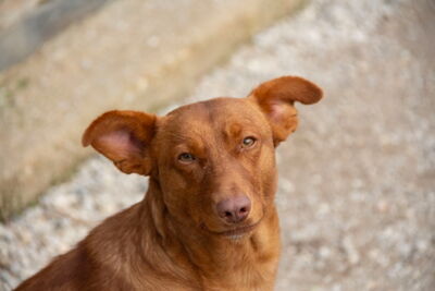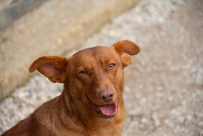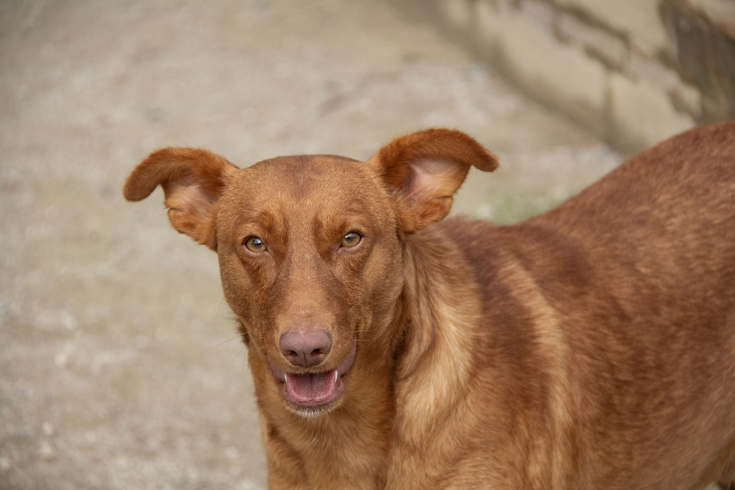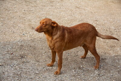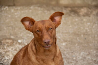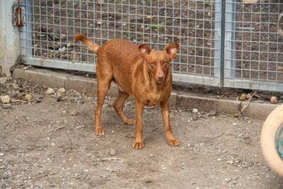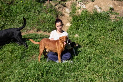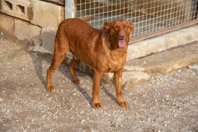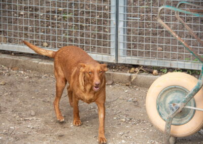 Es muy simpatico, cariñoso y jugueton con los voluntarios. Sale en gran grupo , algo independiente con los demas perros, aprendiendo a jugar con otros perros, probablemente ha vivido solo .